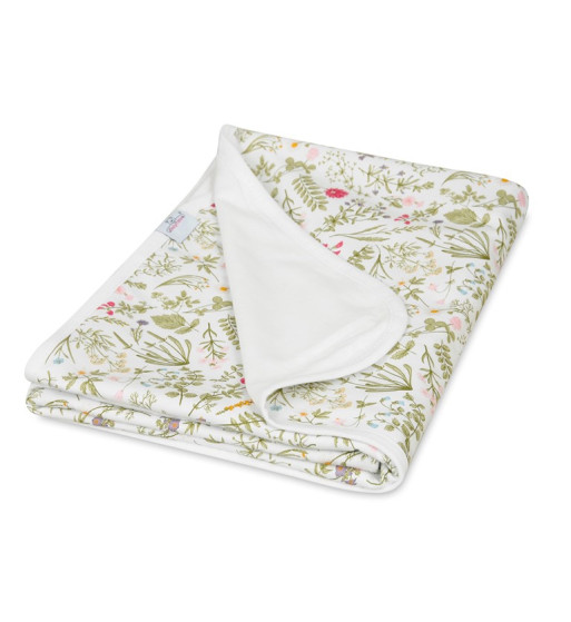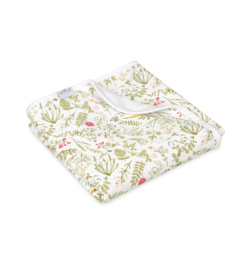 Kocyk dziecięcy INES, roz.75x100cm materiał: JERSEY 100% bawełna- gruby interlock obszyty lamówką, WZÓR Zioła + jersey 01