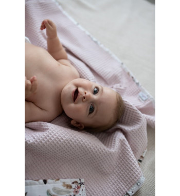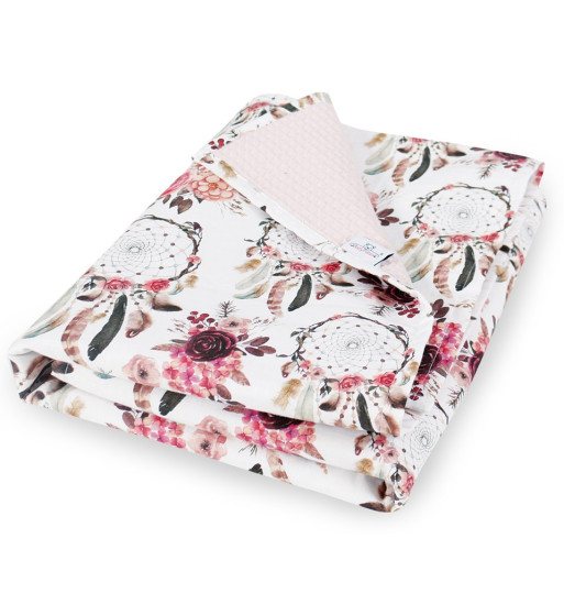 Kocyk PRESTIGE, tkanina bawełniana + WAFER, rozm. 75x100 wzór łapacze + wafel różowy 10