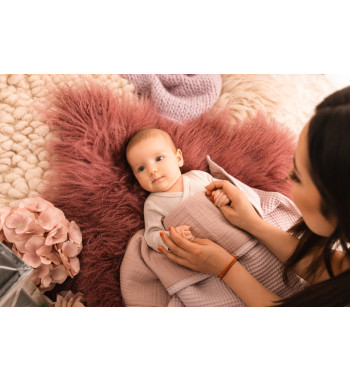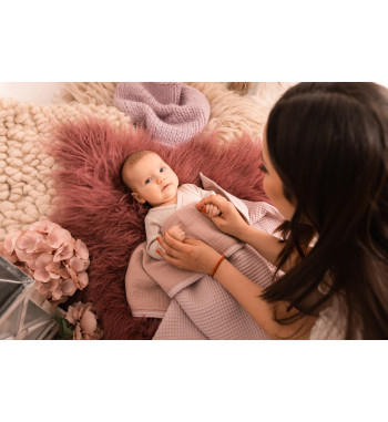 Kocyk PRESTIGE MUSLIN, wafel + muślina, rozm. 75x100 wzór: wafel róż + muślina 12 muślina dwuwarstwowa