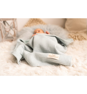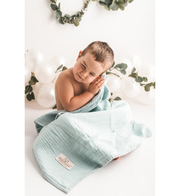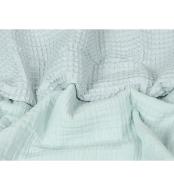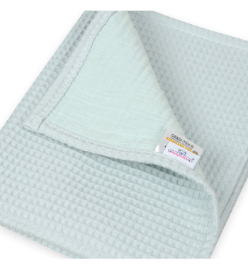Kocyk PRESTIGE MUSLIN, wafel + muślina, rozm. 75x100 wzór: wafel mięta + muślina 33 muślina dwuwarstwowa