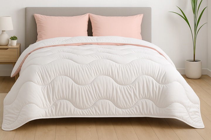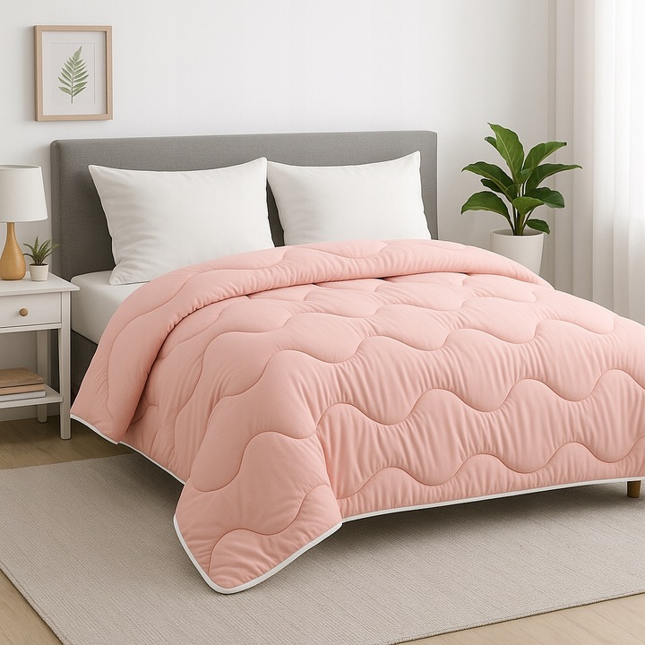 ✅Odkryj kołdrę, która łączy elegancję pudrowego różu z klasyczną bielą i zapewnia lekki, przyjemny sen każdej nocy.