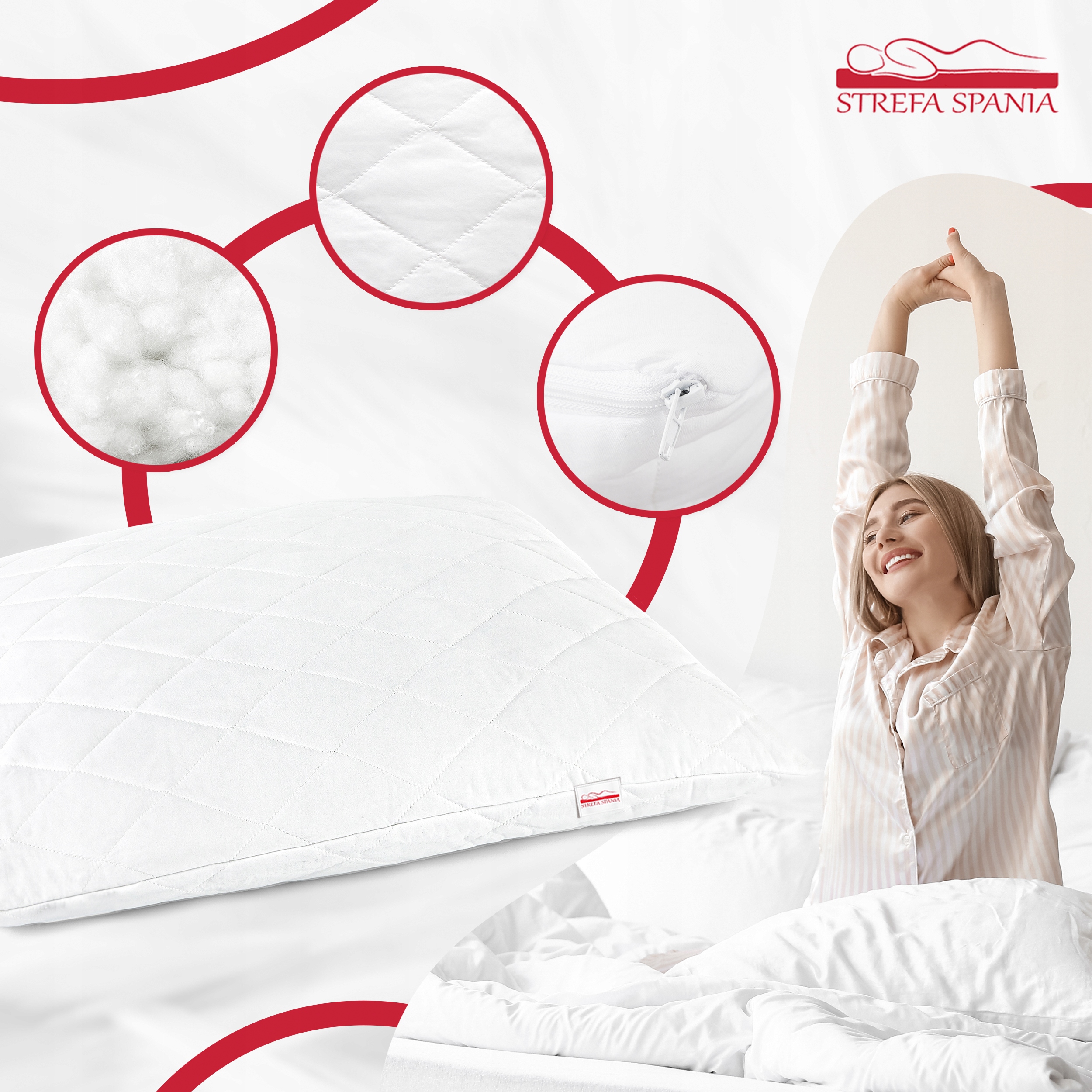 Jeśli poduszka okaże się dla Ciebie zbyt twarda lub zbyt wysoka, w łatwy sposób dzięki wszytemu zamkowi, możesz usunąć nadmiar wypełnienia, aż do uzyskania pożądanej miękkości. To ogromna zaleta produktu!✔️