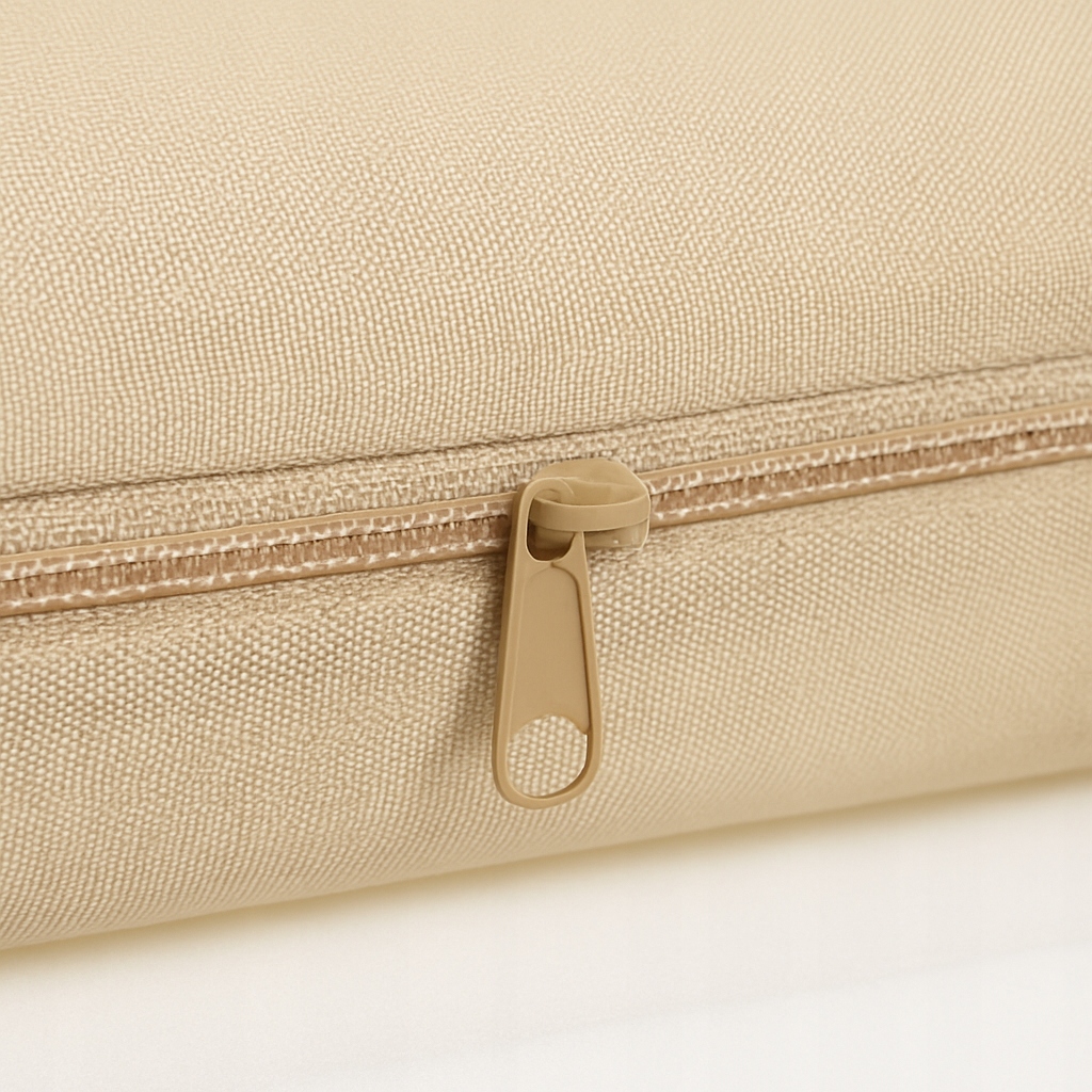 - Zamek: błyskawiczny na całym obwodzie, ukryty pod ochronną listwą