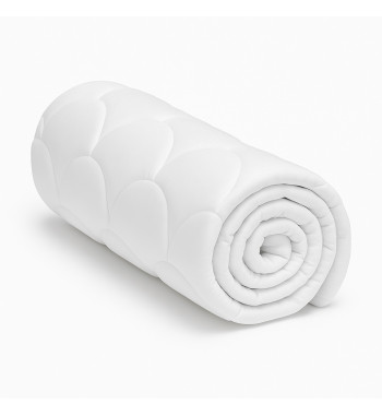 Ochraniacz został wykonany z trwałego poliestrowego poszycia, które jest odporne na przetarcia i łatwe w pielęgnacji. Wnętrze wypełnia włóknina poliestrowa – lekka, puszysta i elastyczna. Taka konstrukcja gwarantuje odpowiednią cyrkulację powietrza, ogranicza nadmierne pocenie się i sprawia, że powierzchnia spania jest przyjemna i miękka w dotyku.