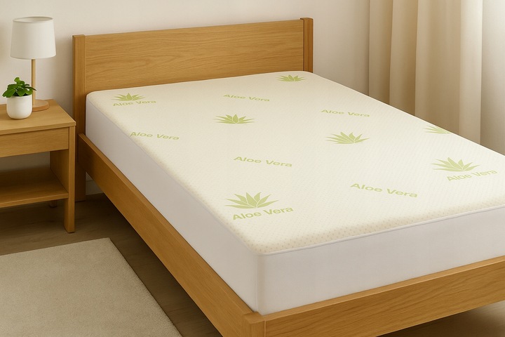 - Tkanina z dodatkiem Aloe Vera – wspiera higienę i świeżość powierzchni spania