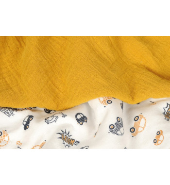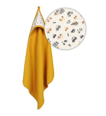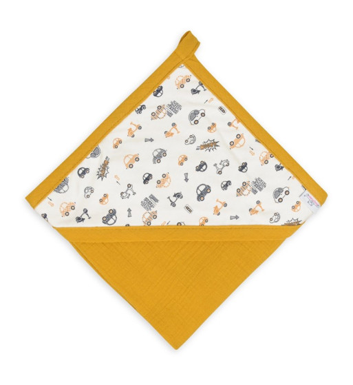 Kąpielowe okrycie MUSLIN DESIGN, roz. 85x85 wzór: muslin 06+autka Muślina dwuwarstwowa Dwie warstwy podwójnej muśliny =2x2