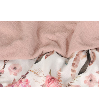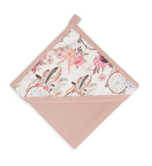 Kąpielowe okrycie MUSLIN DESIGN, roz. 85x85 wzór: muslin 12+łapacze różowe Muślina dwuwarstwowa Dwie warstwy podwójnej muśliny =2x2