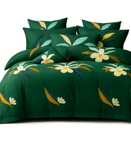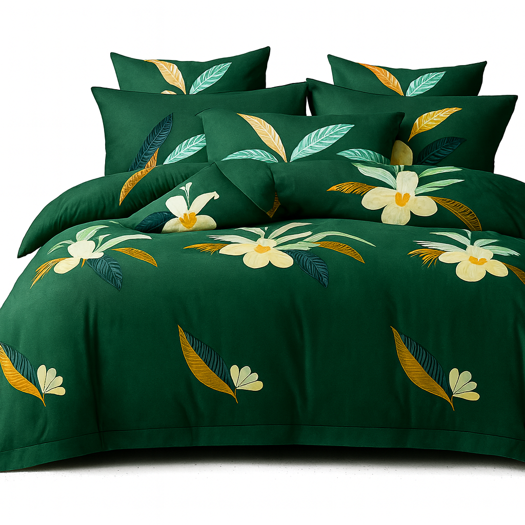 Komplet pościeli 140x200 zielona kwiaty liście