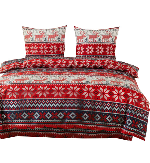 Komplet pościeli świątecznej 140x200 czerwona śnieżynki renifery