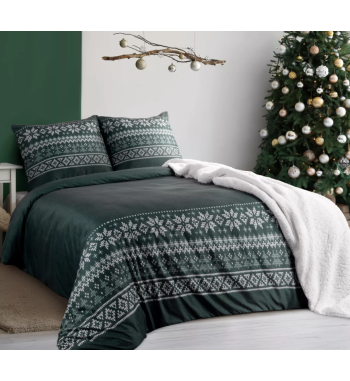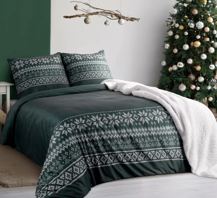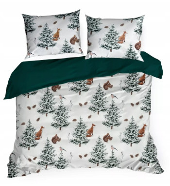 Pościel dwustronna świąteczna 140X200 + 70X80 zimowa Połysk antyalergiczna zielona