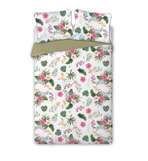 Komplet pościeli 160X200 cm zielona kwiaty 100% bawełna