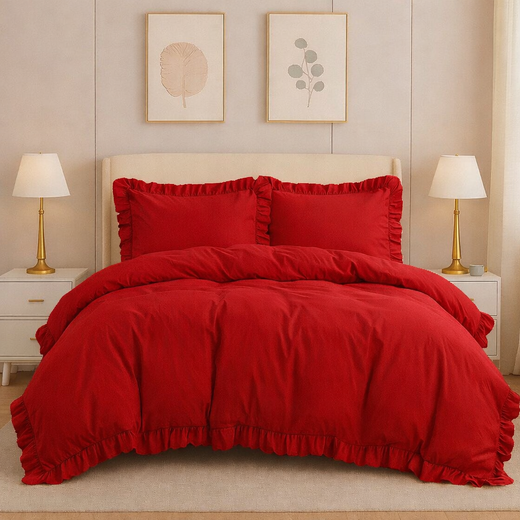 Komplet pościeli 160x200 czerwony falbanka