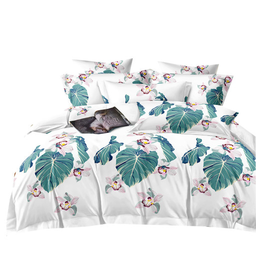 Komplet pościeli 160x200 pościel antyalergiczna biała zielone liście