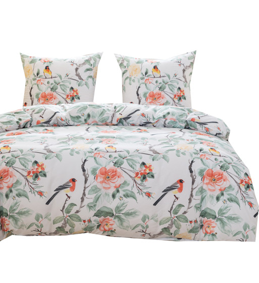 Komplet pościeli 160x200 biała ptaki kwiaty