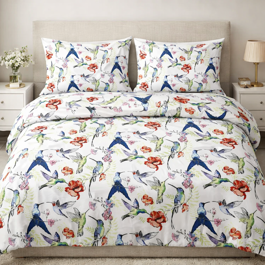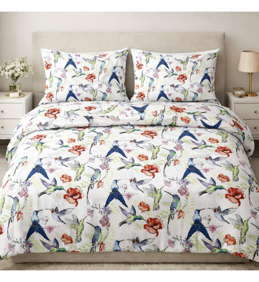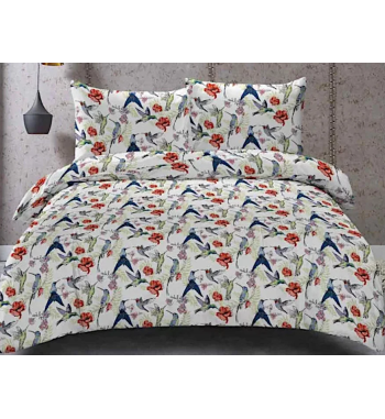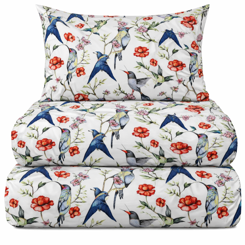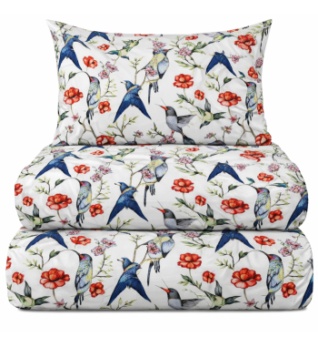 Komplet pościeli 160x200 biała ptaki kwiaty