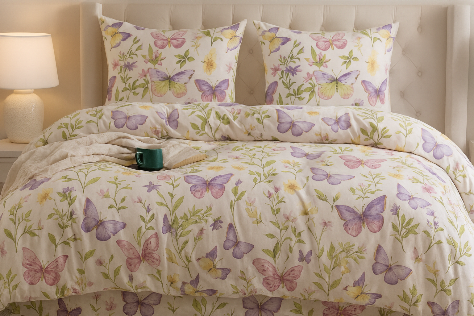 Pościel wykonana została z wysokogatunkowej satyny bawełnianej.