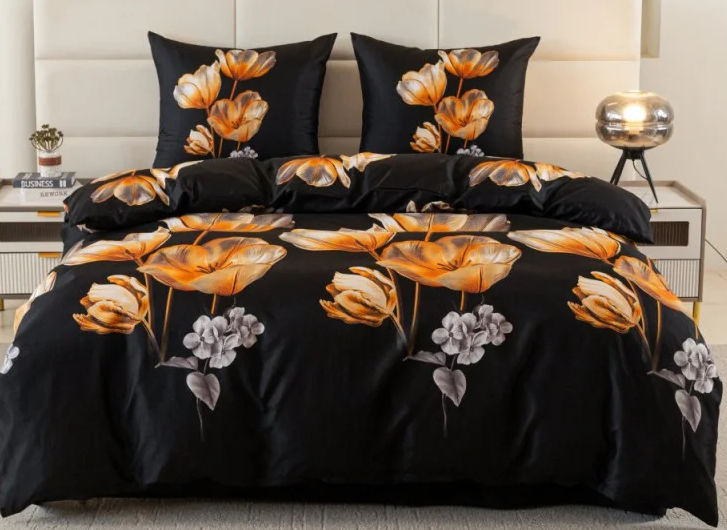 Komplet pościeli 160x200 czarna wzorzysta