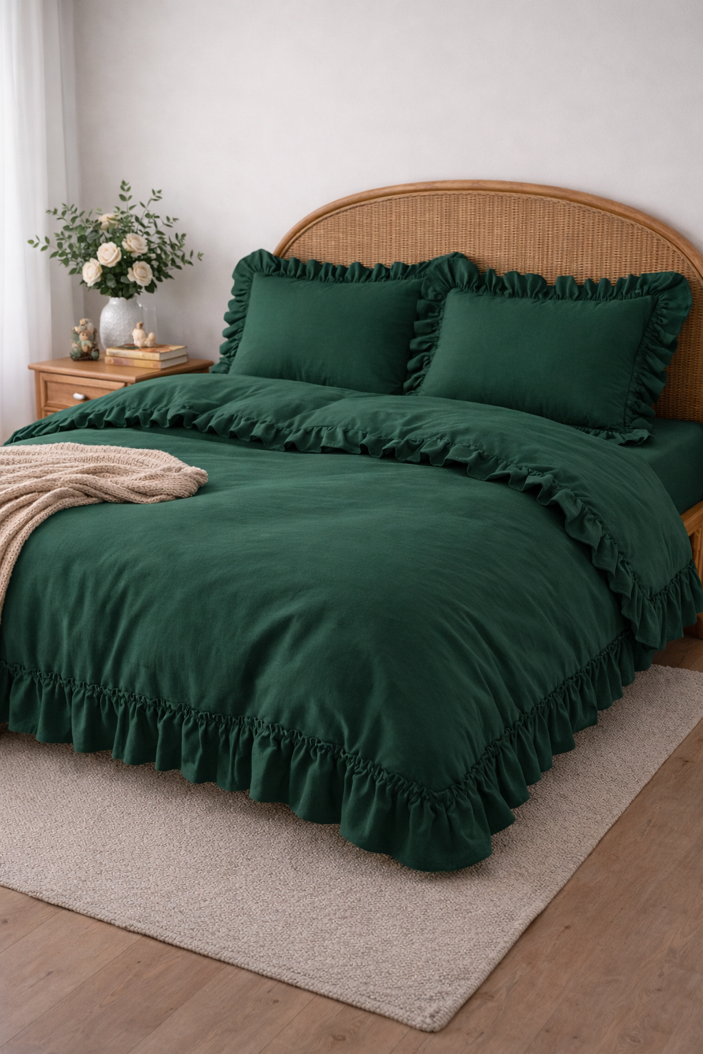 Komplet pościeli 160x200 zielona falbanka
