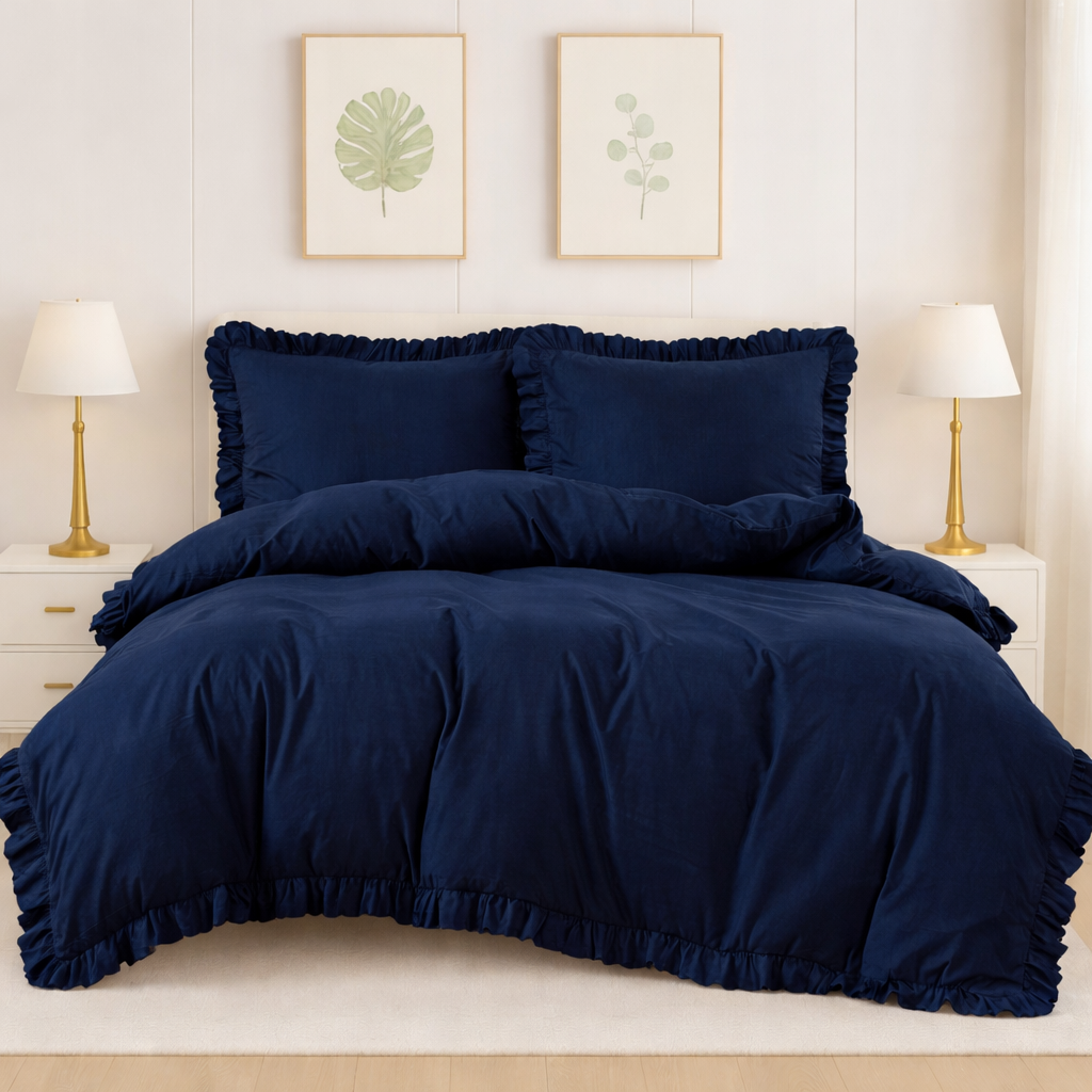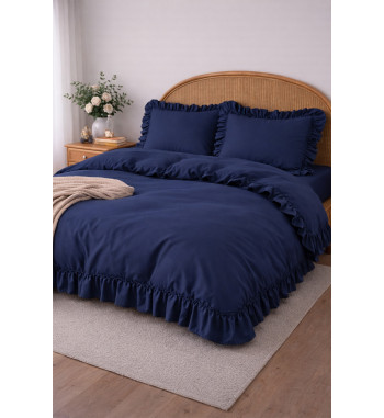 Pościel 160x200 komplet pościeli falbanka granatowa