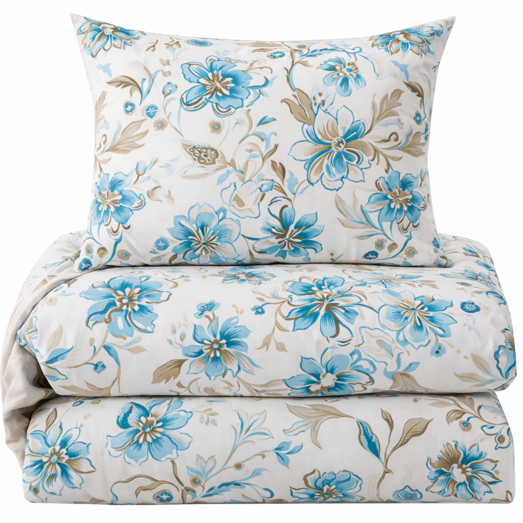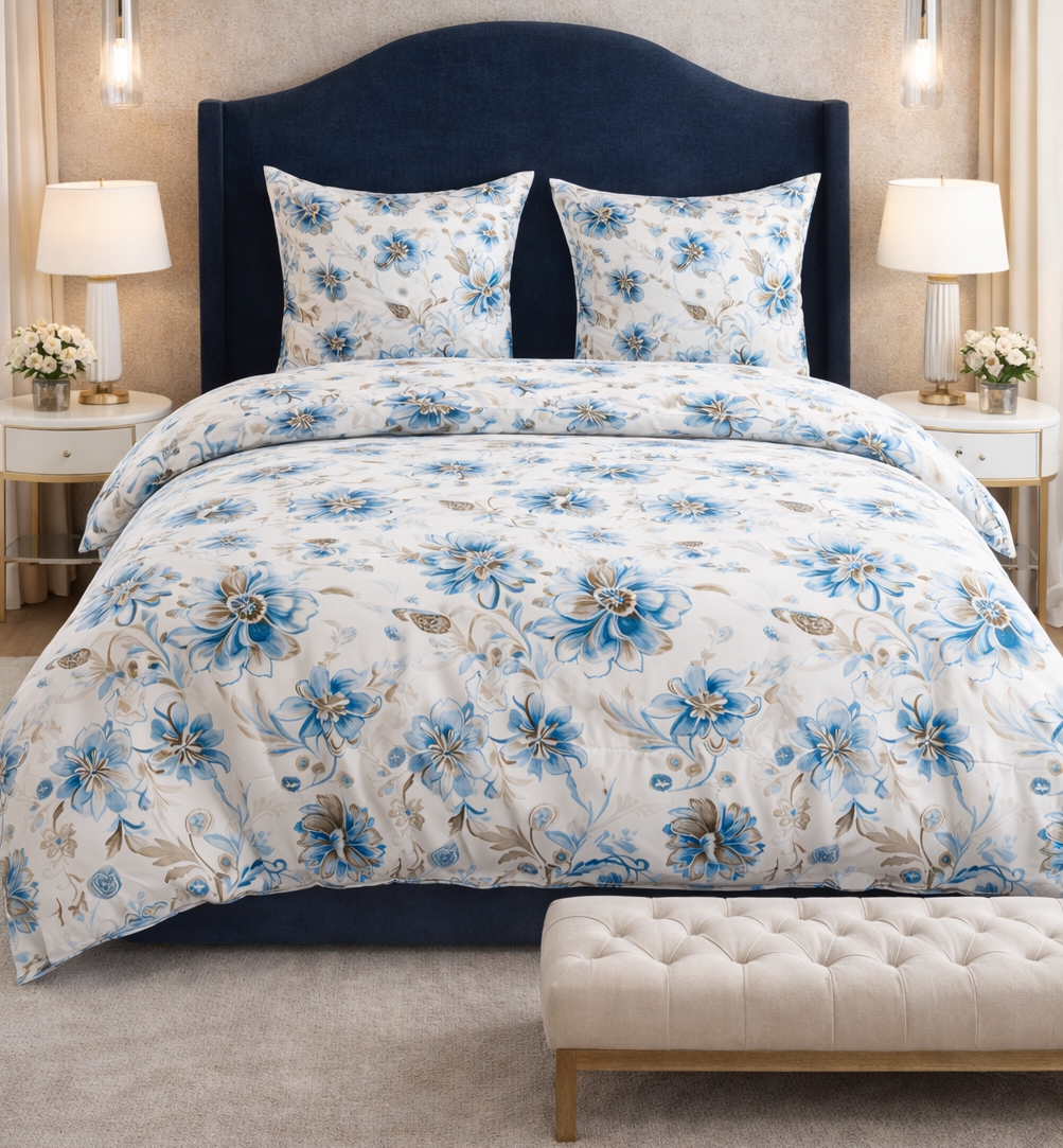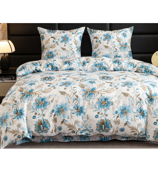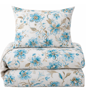 Komplet pościeli 220x200 biała niebieskie kwiaty