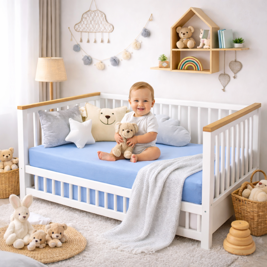 Tak — elastyczne, dopasowujące się prześcieradło z jerseyu to praktyczne i wygodne rozwiązanie do łóżeczka dziecięcego, szczególnie jeśli dziecko często się wierci lub łóżeczko jest małe.