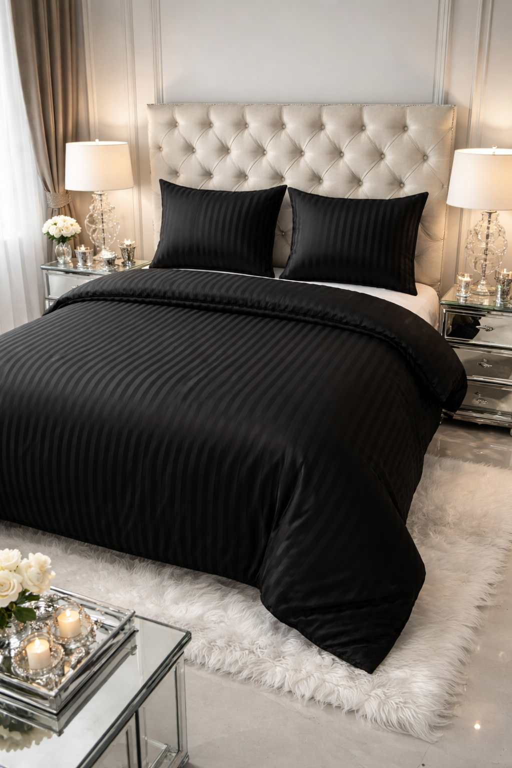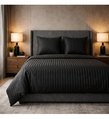 Subtelny wzór w klasyczne pasy nadaje sypialni luksusowy, hotelowy charakter. To prosty sposób, by odświeżyć wnętrze i nadać mu elegancji — bez remontu, bez wysiłku.